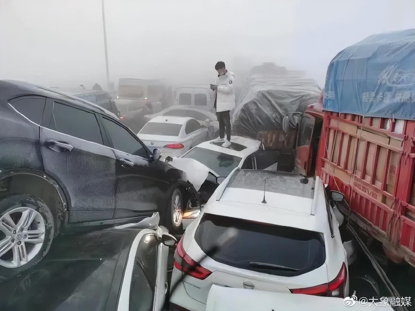 郑州200多车相撞事故已致1死(河南郑新黄河大桥发生多车相撞事故)