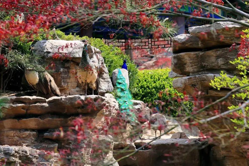 2.天趣苑中驯养有孔雀、火烈鸟、天鹅等鸟禽40余个品种上万只,非常值得一去。除了笼中养着珍珠鸡,白孔雀之类,还有有很多放养的鸭子,鹅,孔雀。天趣苑的孔雀非常之多,悠闲的从面前散步着经过。还能看到孔雀开屏的美景。
