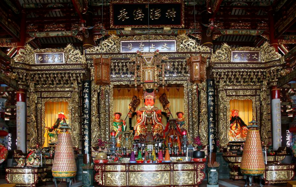 澳门天后宫,2003年10月4日刚刚落成,历时2年半,耗资2亿澳门元。它坐落在澳门路环岛的叠石塘山上,占地近7000平方米,是澳门迄今规模最大的庙宇。